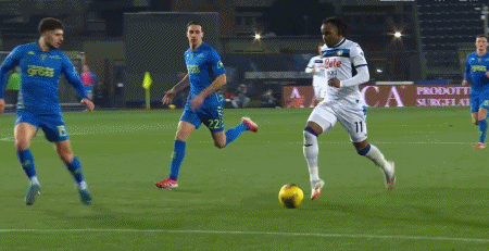 第43分钟,卢克曼拉球过掉门将推空门,亚特兰大3-0。